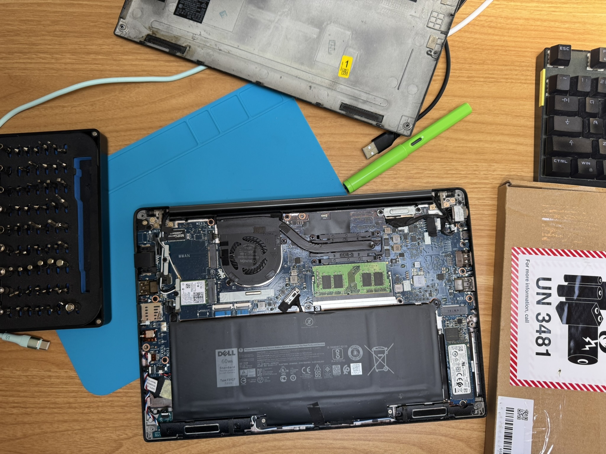 Working on the Latitude 7280 is a really nice experience. I have replaced the WiFi and just after publishing this post a new battery arrived. There are 8 captive screws on the bottom which give access to quite a well laid out board. In mine there is space for a wwan modem.