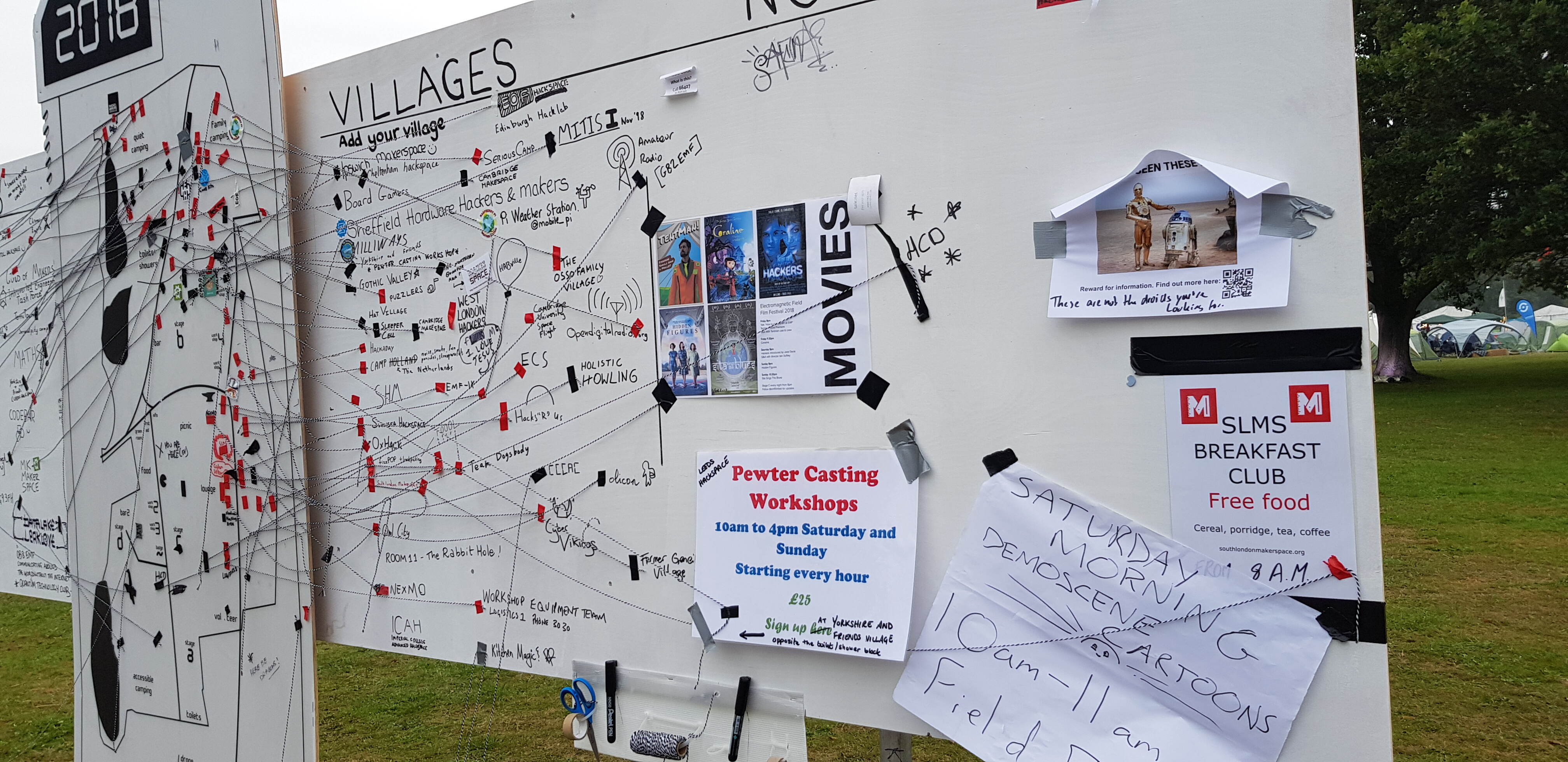 I attended EMF Camp 2014, since then they have really managed to integrate well with the village system used at other camps. The map shows all the spontaneous events that people put together during the camp, the adage 'it is what you make it' really comes out at these events with many participants helping to make it hole.