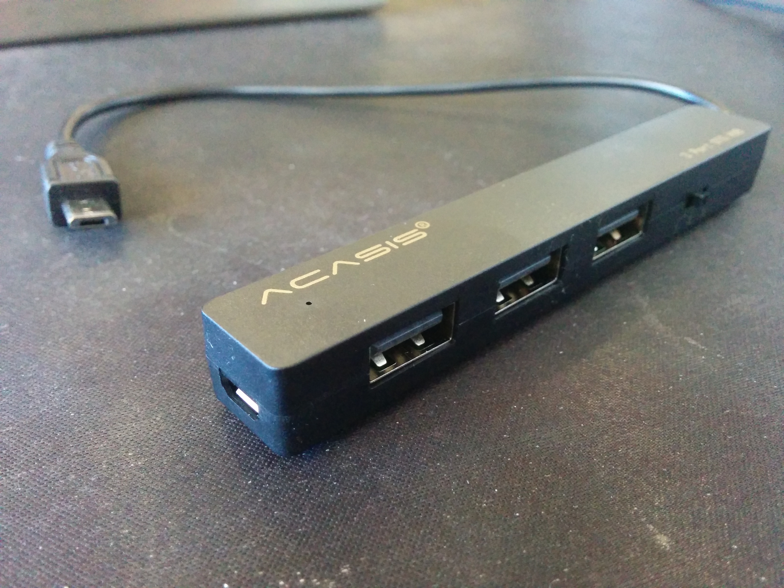 For my silly little tablet I got this awesome usb otg hub thing. It has 3 usb ports, a microusb hole and an otg cable, you can you it to connect 3 devices to your phone or tablet and power them all at the same time.