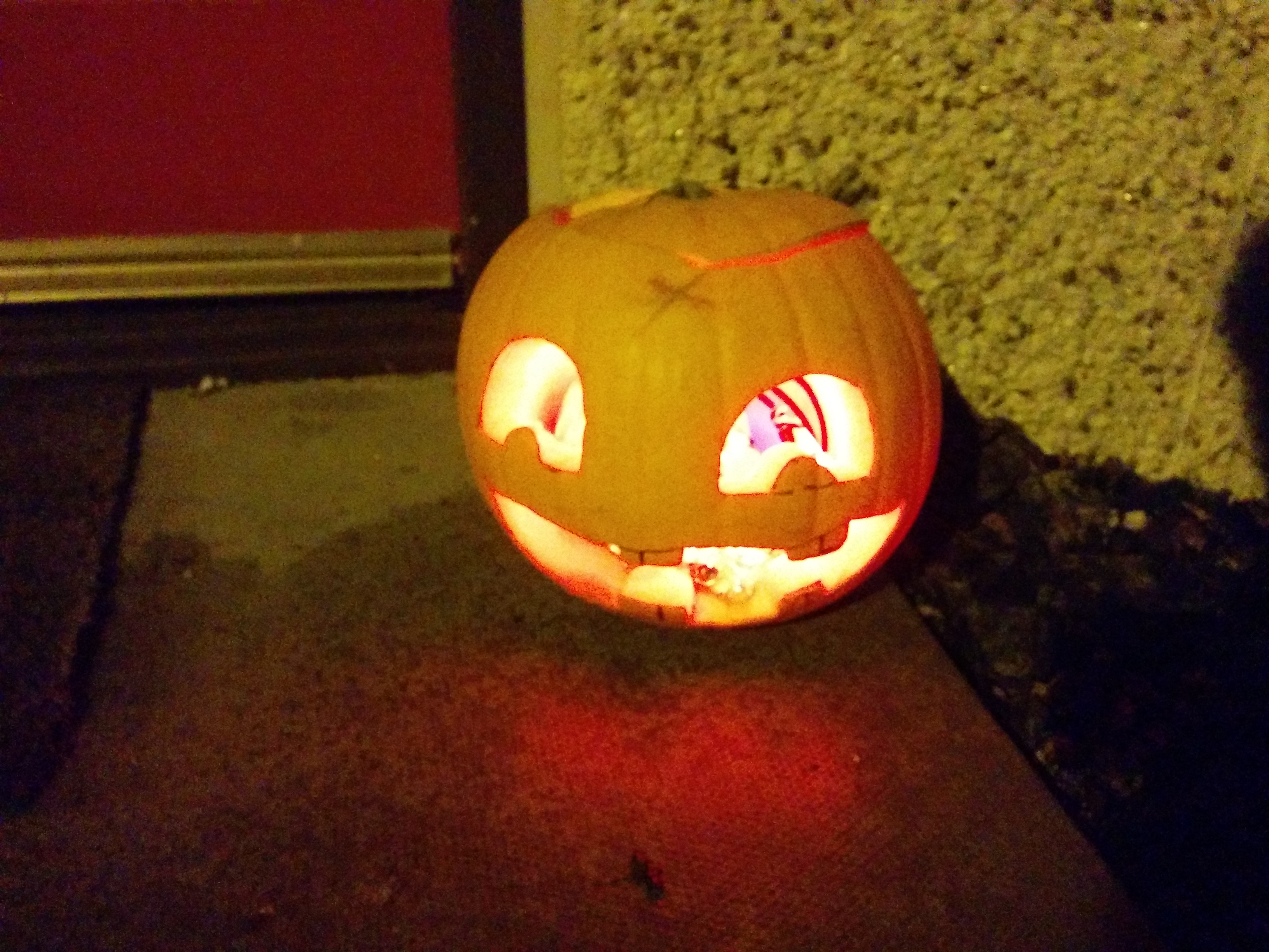 Last night was All Hallows' Eve , I wanted to do something cool with the decorations. I repurposed an rgb neopixel board driven by a nodemcu board and gave one of our pumpkins a network controlled candle instead of the old analog kind.