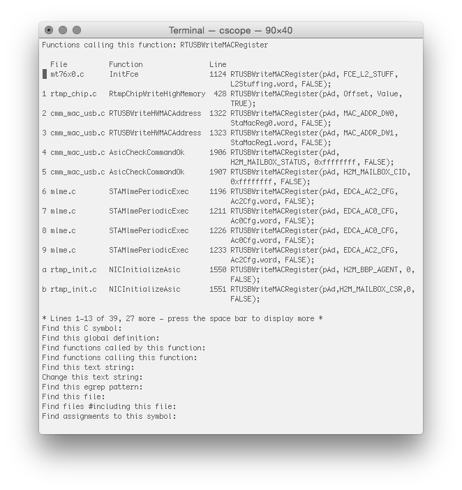 callees() { cscope -R ${GRAPHDB:+-f $GRAPHDB} -L2 $1; }