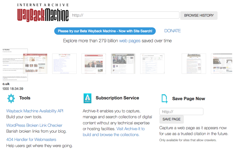 That URL worked great, the history page now has a new scrap entry from today. Having done that I started looking to see how well covered my site was, it turns out very few pages have been captured into the global history.